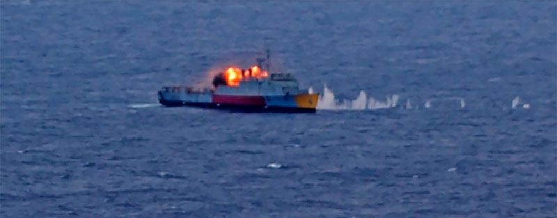 | 戦闘や事故で失った場合(沈没、墜落)や損傷した場合、艦船などの内部で事故や事件がおこった場合の意味です。自軍や同盟軍、所属機関、所有会社が行った沈没処分や破壊処分、漁礁としてまたは演習で使用して沈めた場合にはこのアイコンは付けません | |