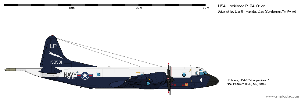 ◎6機 発注と製造時にはP3V-1。1962年9月以降の名称はP-3A | ◎149669(c/n 185-5010)は1975年3月、グアムのアガナ海軍航空基地 NAS AganaにてEP-3(Modex No. PR-32)として登録。かつては中華民国空軍第34飛行隊で運用され、黒色塗装が施されていた。EP-3Bに改修され、のちにEP-3Eにアップグレードされた。サウス・カロライナ州グリーンヴィル基地 LAC GreenvilleにてEP-3Eプログラムのために分解された | |