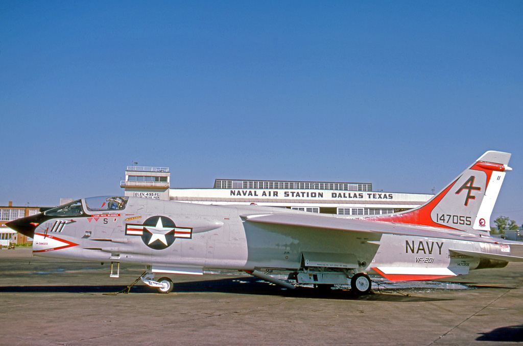 ↑Vought F-8H Crusader II of VF-201 at Naval Air Station Dallas in October 1975. Image courtesy of en.wikipedia.org.