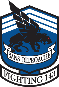 | 海軍には2つの飛行隊がVF-143の名称を保持している。最初のVF-143飛行隊は1950年7月20日にVF-821として設立され、1953年2月4日にVF-143に改称され、1958年4月1日に閉隊。2番目のVF-143飛行隊は1950年に設立され、最終的にVFA-143に改称され、この記事の対象となっている | |