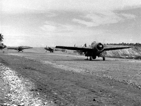 El Toroに向かった。スカイレイダーでの訓練を終えたのち、飛行隊は護衛航空母艦シトコー・ベイ Sitkoh Bay(CVE-86)で横須賀へ輸送され、大韓民国への戦闘展開に向けた最終準備を開始した。1953年6月には、水湖ダム Sui-ho Dam攻撃において16機のAD-2スカイレイダーが156tの爆弾を投下し、当時の海兵隊における1日当たりの弾薬投下量記録を樹立した |