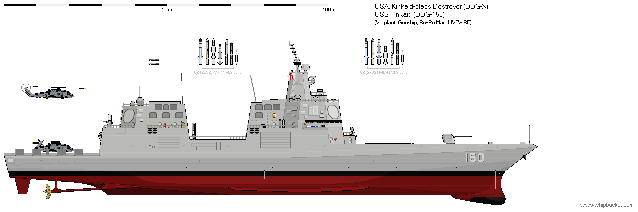 - ※兵装:ターターSAM単装発射機1基、54口径127mm単装両用砲2基、アスロックSUM8連装発射機1基、324mm3連装短魚雷発射管2基