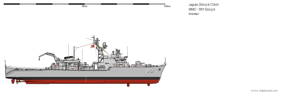 | そうや | Sōya | MMC-951 | 日立造船舞鶴工場 | 1971/9/30 | 1996/11/29 | ◎1970/7/9 起工 ◎1971/3/31 進水 ◎1971/9/30 竣工、敷設艦に類別。第2掃海隊群に編入(旗艦)、横須賀に配備 ◎1977/1/22 艦種区分変更により、敷設艦(MMC)は艦種呼称が機雷敷設艦に改められた ◎1988 20mm単装機銃2基を撤去し、JM61-M 20mm機銃2基設置 ◎就役中の総航程は約295,000浬に達した。そうやの除籍により、海上自衛隊が保有する自衛艦の種別から機雷敷設艦が削除された |