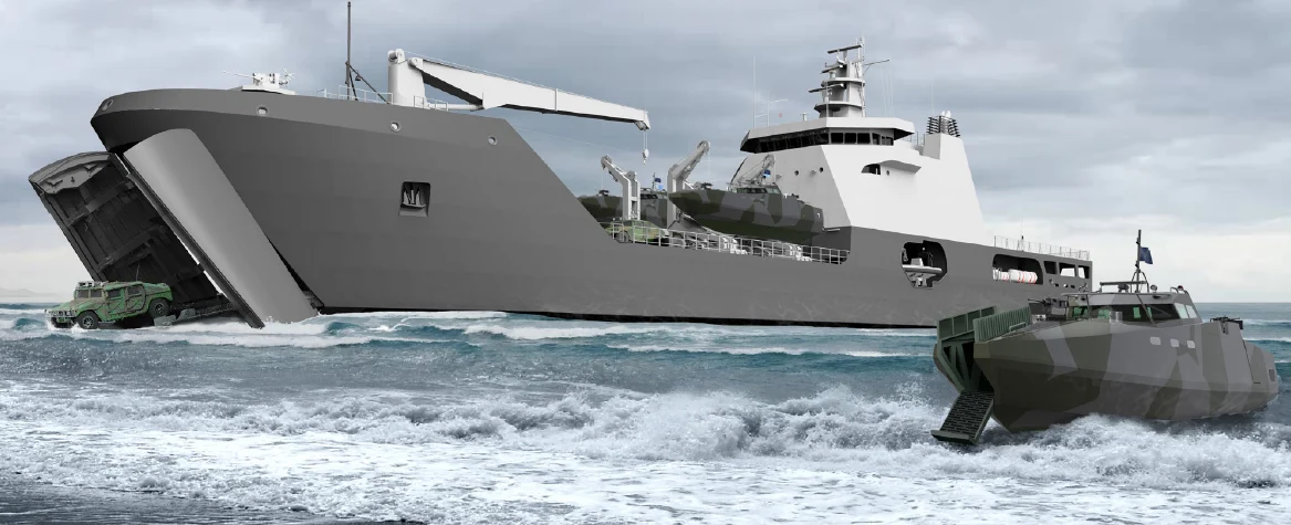 - ※ジョン C. フェラン海軍長官 Secretary of the Navy John C. Phelanは 2025年12月5日に、新型のLSM計画について、Damen Navalが提案していた LST 100案の採用を発表した。貨物搭載スペースは100m×16mで面積1,020平方メートル、搭載量500t。35隻の建造を計画している