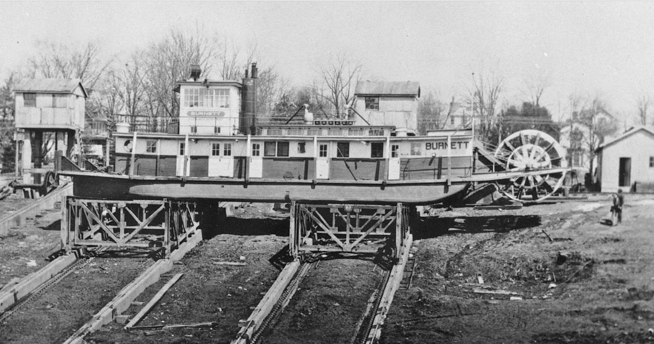 ↑USED Burnett on the builders ways at Nashville Bridge Co., Nashville, TN., 1926. University of Wisconsin-Madison LaCrosse Historic Steamboat Collection. Image courtesy of NavSource.