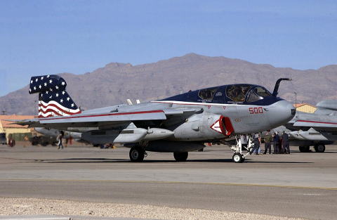 ↑VAQ-140 EA-6B Prowler at Nellis Air Force Base in 2008. Image courtesy of en.wikipedia.org.