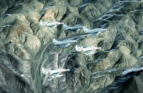 ↑VMA-133 A-4Fs in flight near NAS Fallon, 1982. Image courtesy of en.wikipedia.org.
