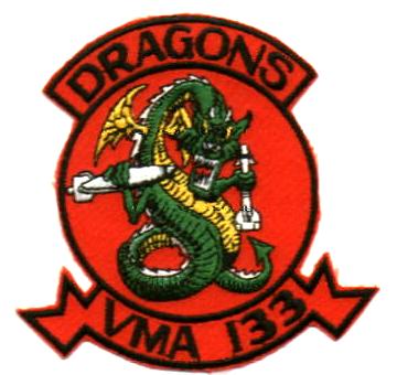 - ※第133海兵攻撃飛行隊(Marine Attack Squadron 133: VMA-133)は、アメリカ海兵隊の予備役A-4スカイホーク攻撃機飛行隊だった。当初はVMSB-133として知られ、第二次大戦中はブーゲンヴィル島とフィリピンで戦闘に参加した。戦後、同飛行隊は海兵隊予備役に編入された。“ドラゴンズ”としても知られるVMA-133は、第4海兵航空団第42海兵航空群 Marine Aircraft Group 42 of the 4th Marine Aircraft Wingに所属し、カリフォルニア州アラメダ海軍航空基地 NAS Alamedaを拠点としていた。冷戦終結後の米軍縮小の一環として、1992年に閉隊